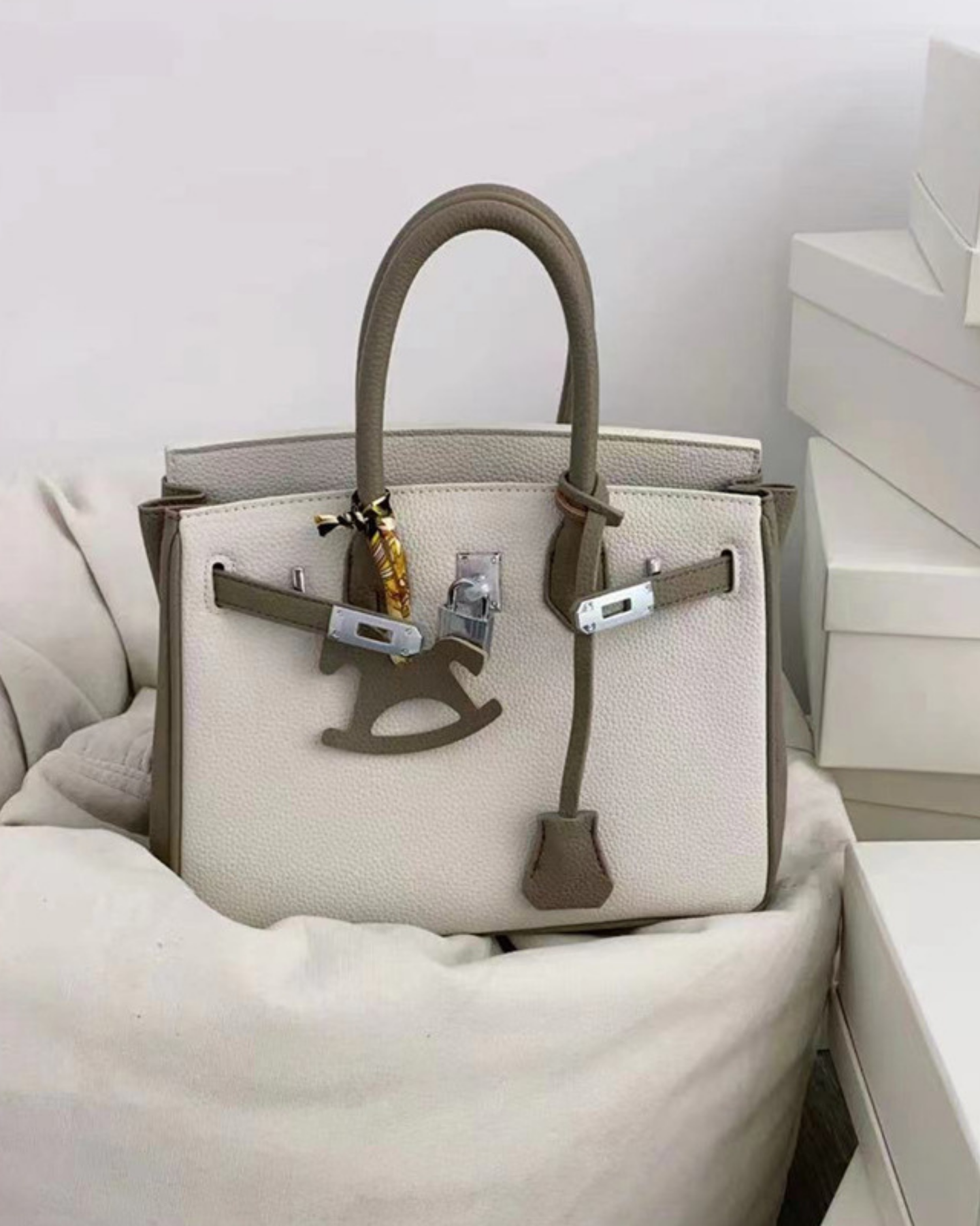 Designed for those seeking an elegant bag for workdays and a practical companion for weekends. The two-tone structure gives it a modern look, while the lock closure ensures the safety of your valuables. The adjustable and removable shoulder strap allows it to be carried by hand, on the shoulder, or crossbody. Inside, a dedicated compartment keeps your phone, small wallet, keys, and makeup organized, while metal feet protect the base of the bag from surfaces.
